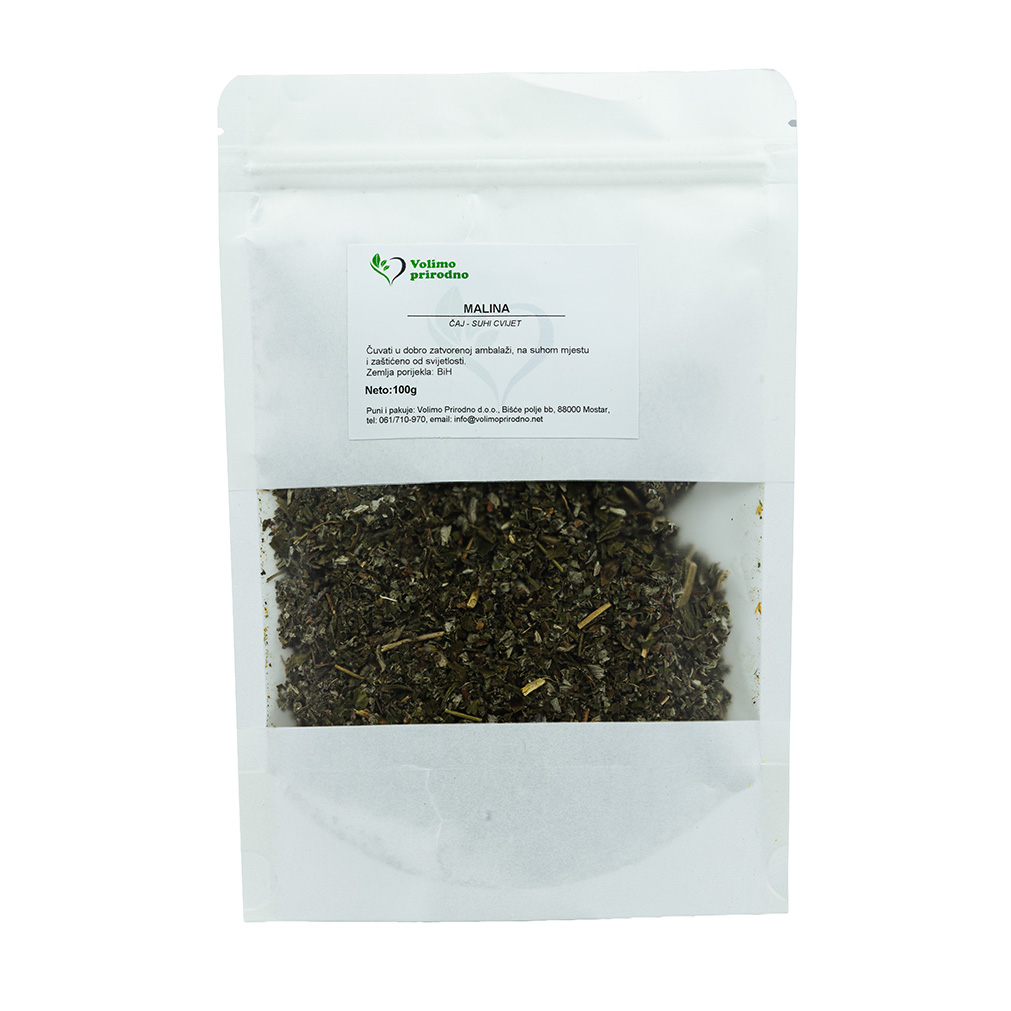 Opis: Čaj malina list (lat. Rubus idaeus folium) priprema se od sušenih listova biljke maline, koja je poznata po svojoj upotrebi u narodnoj medicini, posebno u ženskom zdravlju. Ovaj biljni napitak koristi se za balans hormona, ublažavanje menstrualnih grčeva, podršku imunitetu i pročišćavanje tijela. List maline je bogat polifenolima, flavonoidima, taninima i vitaminima (C i B‑kompleks), koji doprinose antioksidativnim, adstringentnim i tonizirajućim efektima.