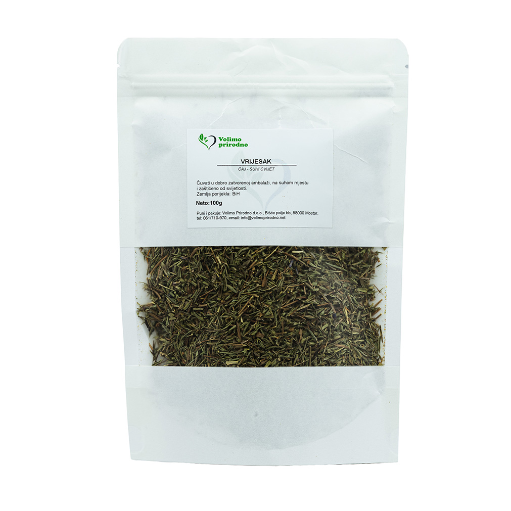 Sastojci: 100 % sušeni nadzemni dijelovi primorskog vrijeska (Satureja montana).